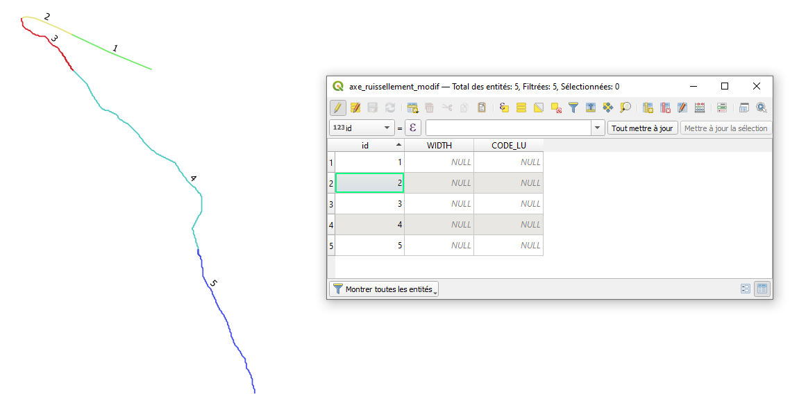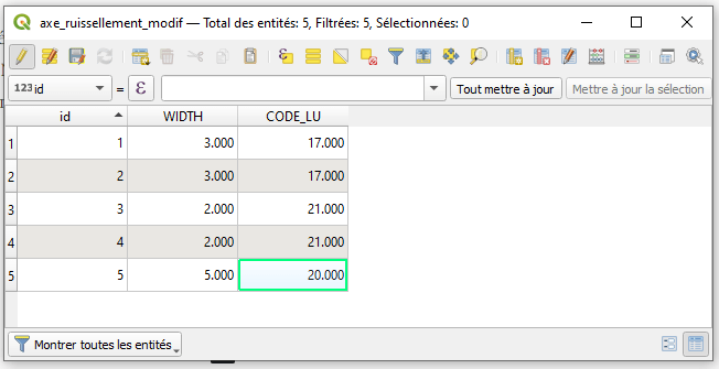 Edit axe_ruissellement_modif attribute table. Save changes and exit edit mode.