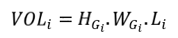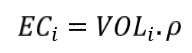 The concentrated erosion ECi (kg) is obtained by multiplying the volume of the gully VOLi by the density of the soil rho, arbitrarily defined as 1400 kg/m3.