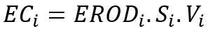Concentrated erosion ECi (kg) is calculated as the product of erodibility ERODi (-), the local slope Si (%) and runoff volumeVi (m3) :
