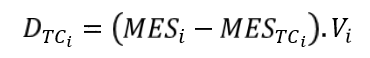 La quantité de sédiment déposée en cas de dépassement de la capacité de transport est déterminée DTCi (kg) selon :