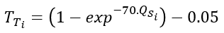 For fascines and hedges, an empirical equation has been developed on the basis of AREAS work. The sediment transfer rate TTi (-) is a function of the specific water inflow QSi (m3/m/s). The equation is as follows :