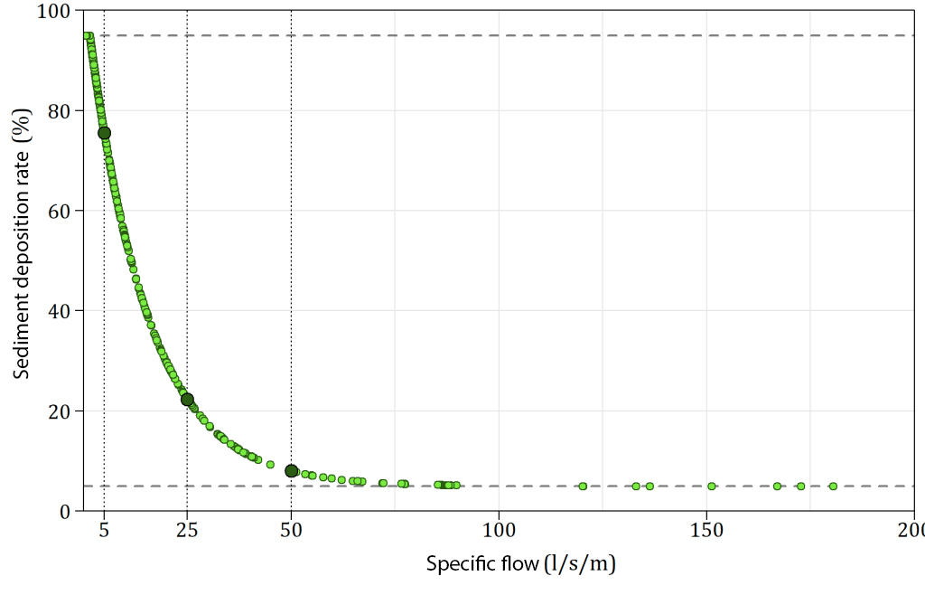 The transfer rate was bounded between 0.05 and 0.95 since these structures can’t trap/transfer 100% of the sediment flux. Based on this transfer rate, the sediment deposition rate TDi (-) is determined according to the equation :